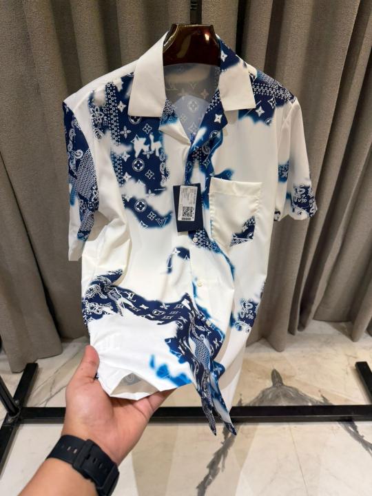 New Monogram Printed Ocean Green Half Shirt